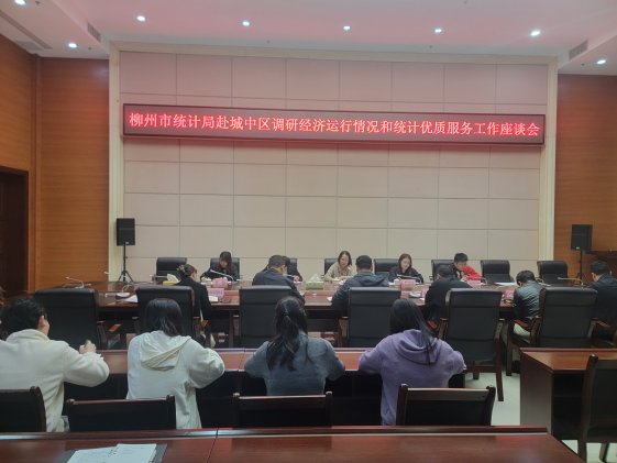 调研组一行采取召开座谈会的形式,详细了解城中区、柳北区一季度经济运行情况,和与会人员进行深入交流,认真听取关于数据报送、上规入统等方面统计工作中的疑问,详细回答提出的有关问题,积极回应需要协调解决的事项。调研组结合全市经济形势与城中区、柳北区实际情况,针对性地提出了工作意见建议。座谈会后,调研组深入柳州万达广场商业物业管理有限公司、柳州保利置业有限公司实地指导,开展统计服务工作。